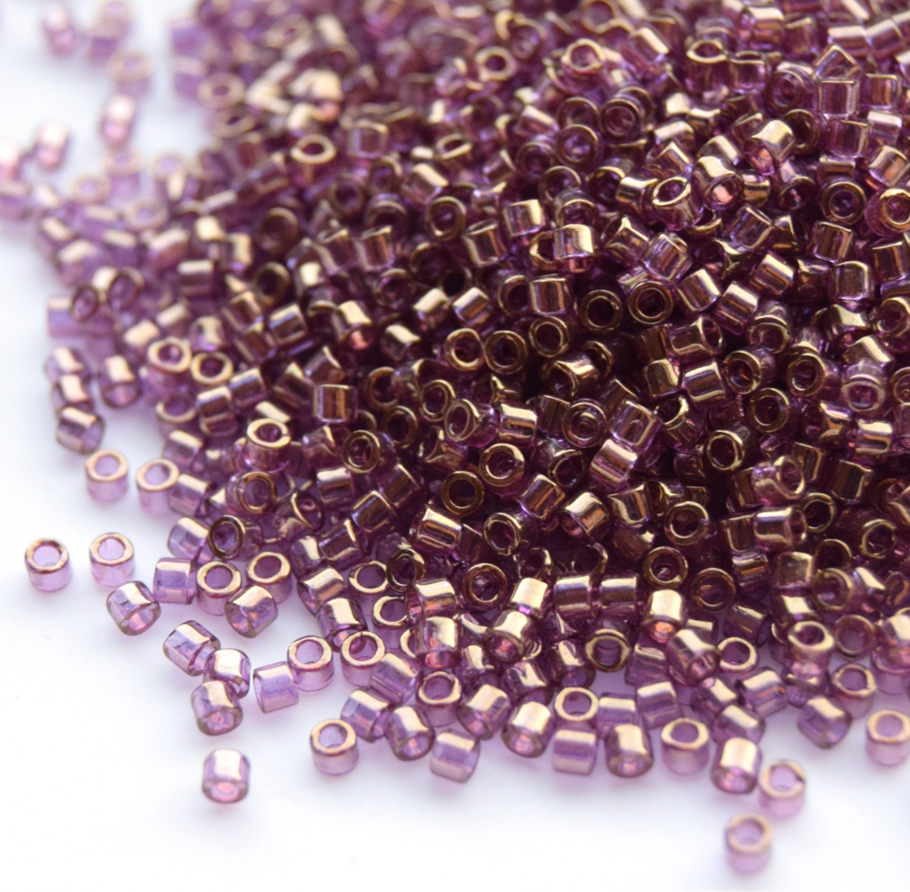DBM-0108 Бисер цилиндрический Миюки делика 10/0 Аметист прозрачный с золотым отливом /Miyuki delica 10/0 Amethyst Gold Luster