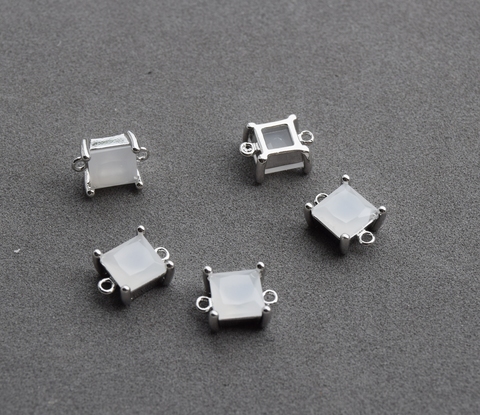 Коннектор квадрат 7*10 мм, белый опал, покрытие родий