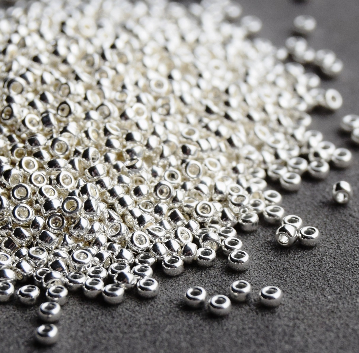 Обратите внимание! Бисер покрыт серебром и окисляется как серебро. Чистить бисер как металл не представляется возможным т.к. покрытие очень тонкое.