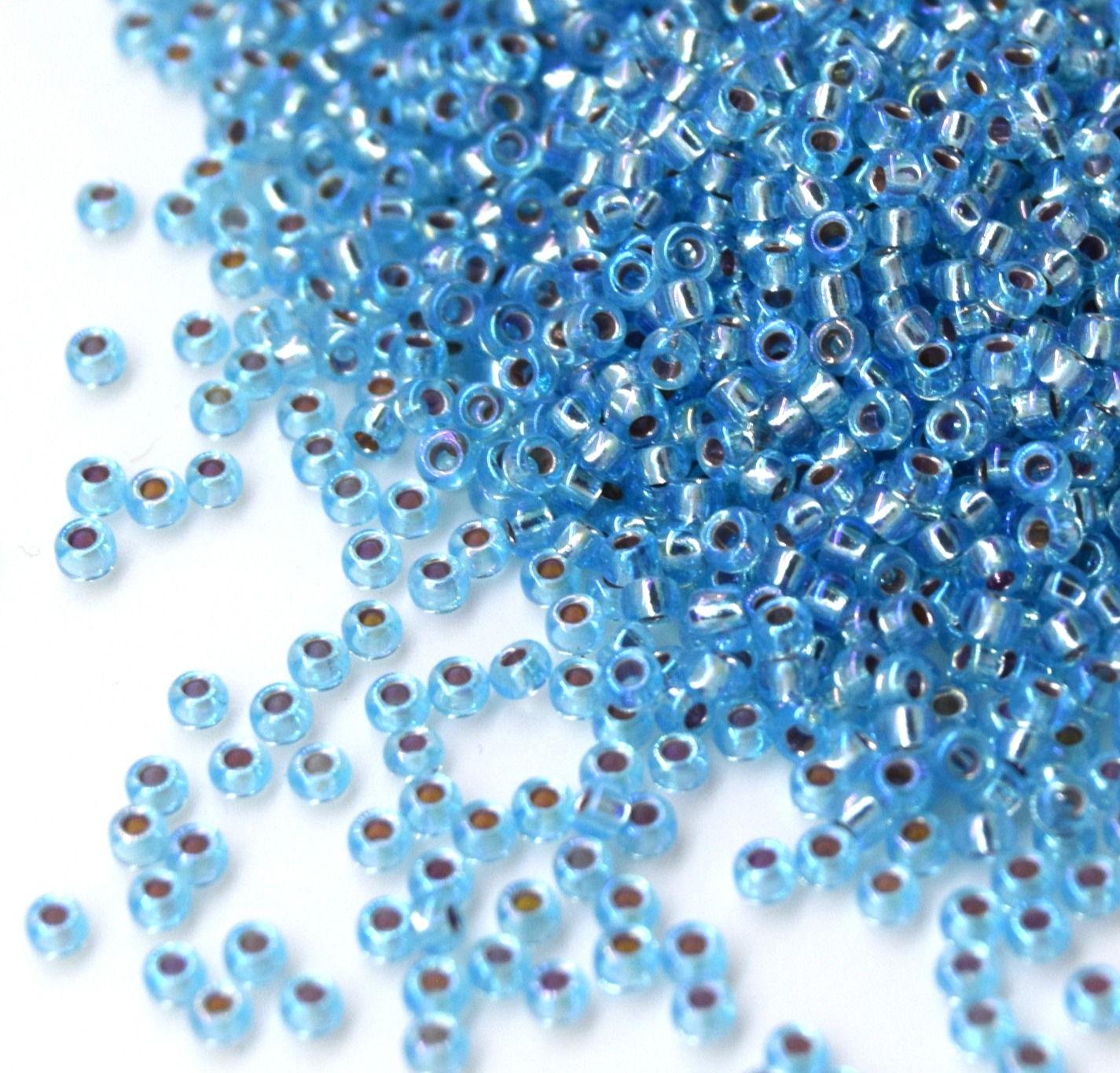 RR-1018 Бисер круглый Миюки 11/0 Голубой прозрачный радужный с серебристой линией внутри /Miyuki round 11/0 Silverlined ab Aqua