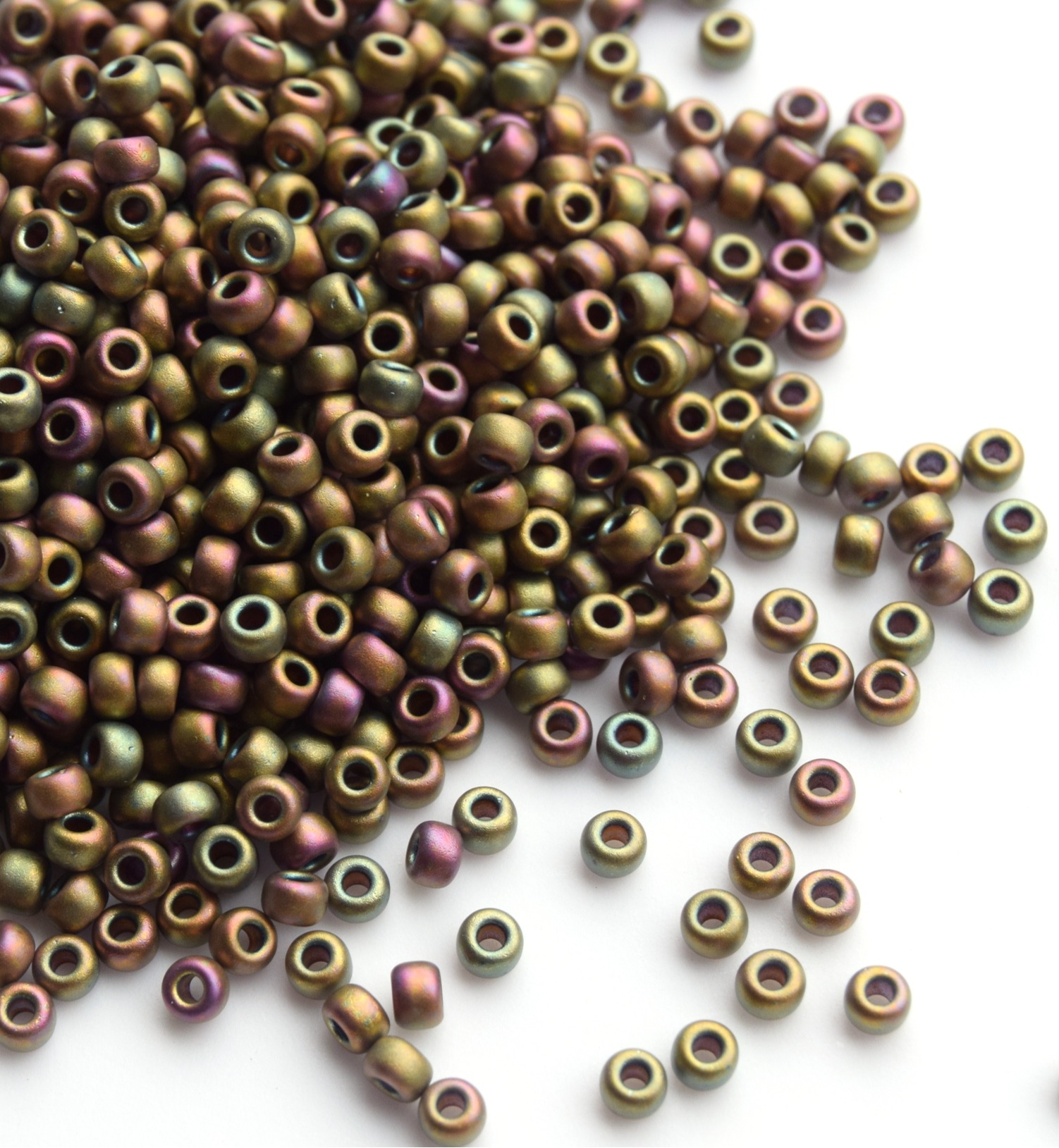 8/0 RR-2035 Бисер круглый Миюки Хаки матовый радужный /Miyuki round 8/0 Matted Metallic Khaki Iris