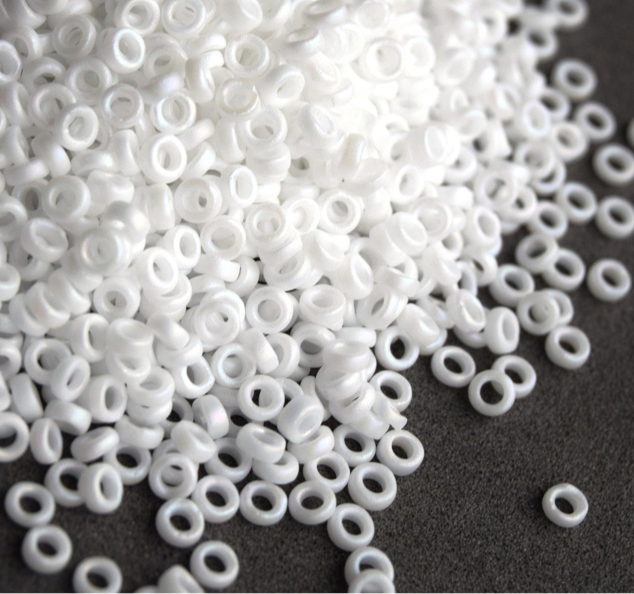 SPR-0402FR Бисер-разделитель 2.2*1мм матовый белый не прозрачный радужный/ Spacer beads 2.2*1mm white opaque matted ab